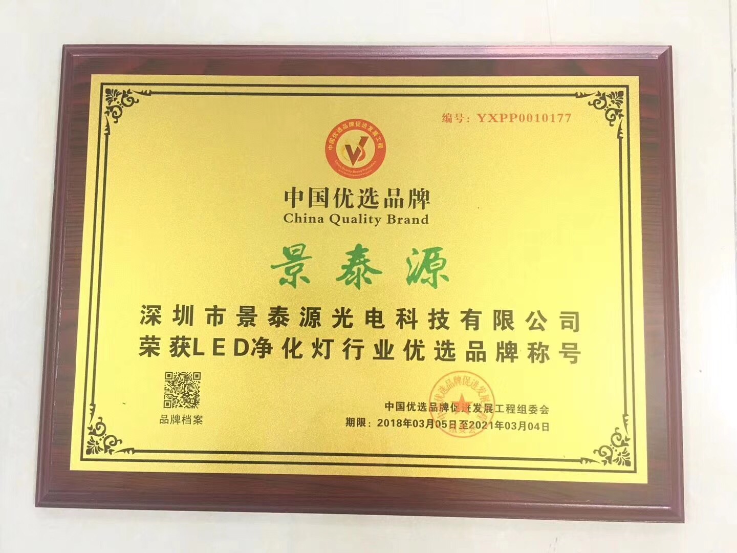 熱烈祝賀景泰源品牌LED凈化燈入圍LED行業(yè)中國優(yōu)先品牌